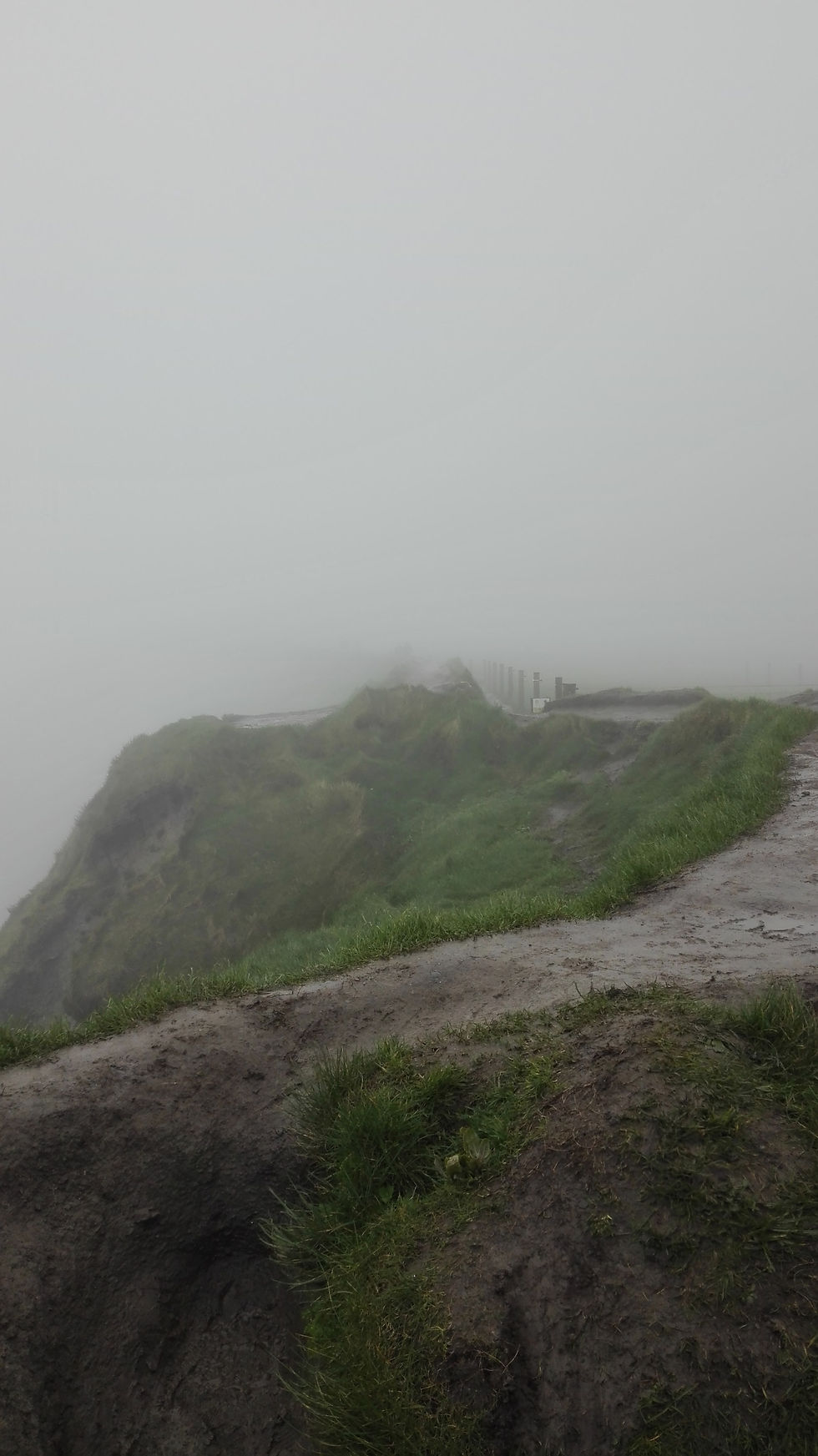 Esque habia niebla y llovia. A dentro, habia un sitio donde habian fotos de esos acantilados y nos tubimos que conformar con las paradas que hacia el autocar para hacer fotos como esta: