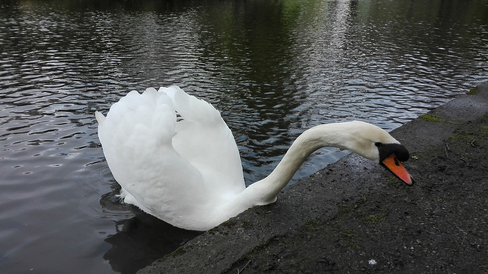 Allí habían muchos patos y dos cisnes, y el parque muy chulo.